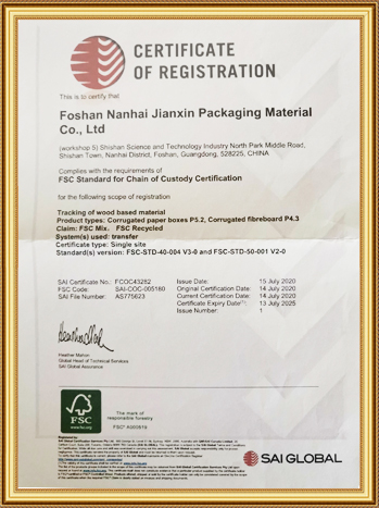 佛山市南海简信包装材料有限公司佛山市南海简信包装材料有限公司是一家有着近20年历史的包装行业知名企业,公司专业生产销售各类瓦楞纸板、纸箱、彩箱、等绿色环保纸制品包装产品及配套服务。